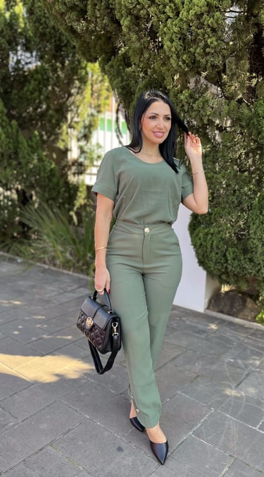 Um look verde militar é uma ótima escolha para quem tem um estilo natural e aprecia tons neutros. Aqui montamos uma proposta versátil: calça + blusa, um conjunto clássico que une elegância, conforto e praticidade para o dia a dia.